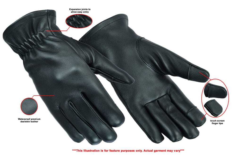 Men’s un-lined lined glove featuring touch screen finger tips and w/clinch wrist. Made in premium Deerskin Leather.